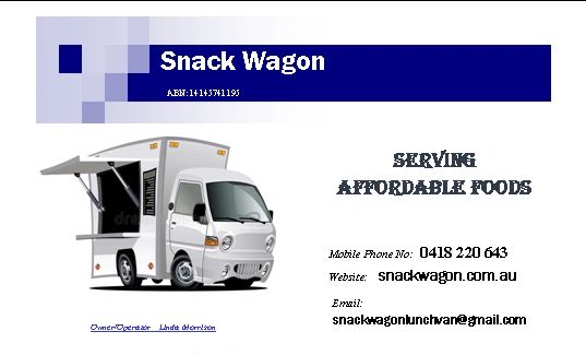 Telephone: 0418 220 643 Email: snackwagonlunchvan@gmail.com Website: snackwagon.com.au